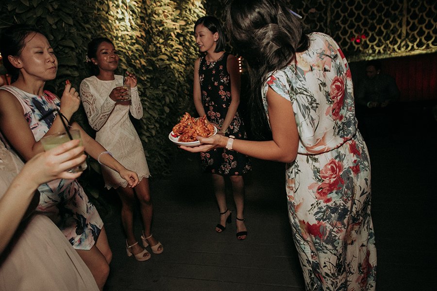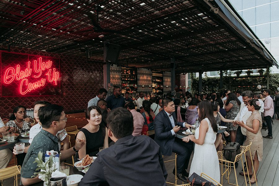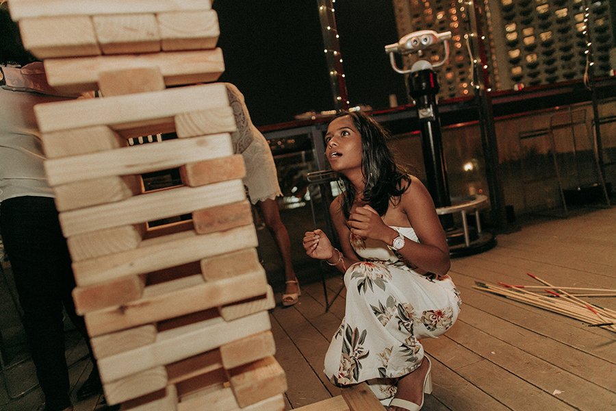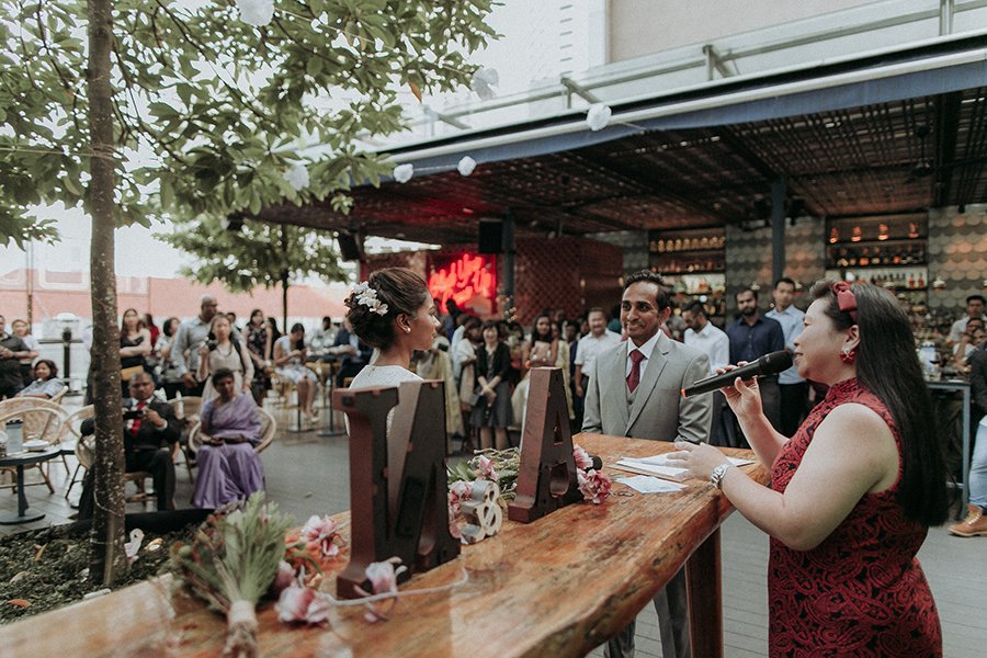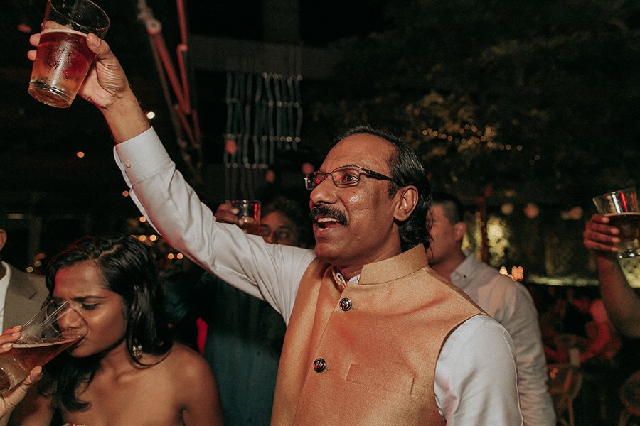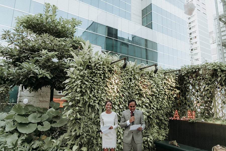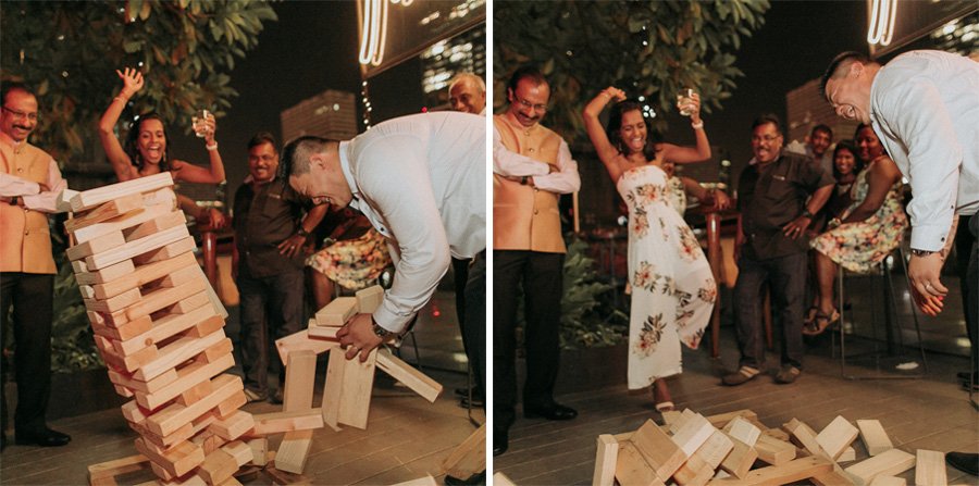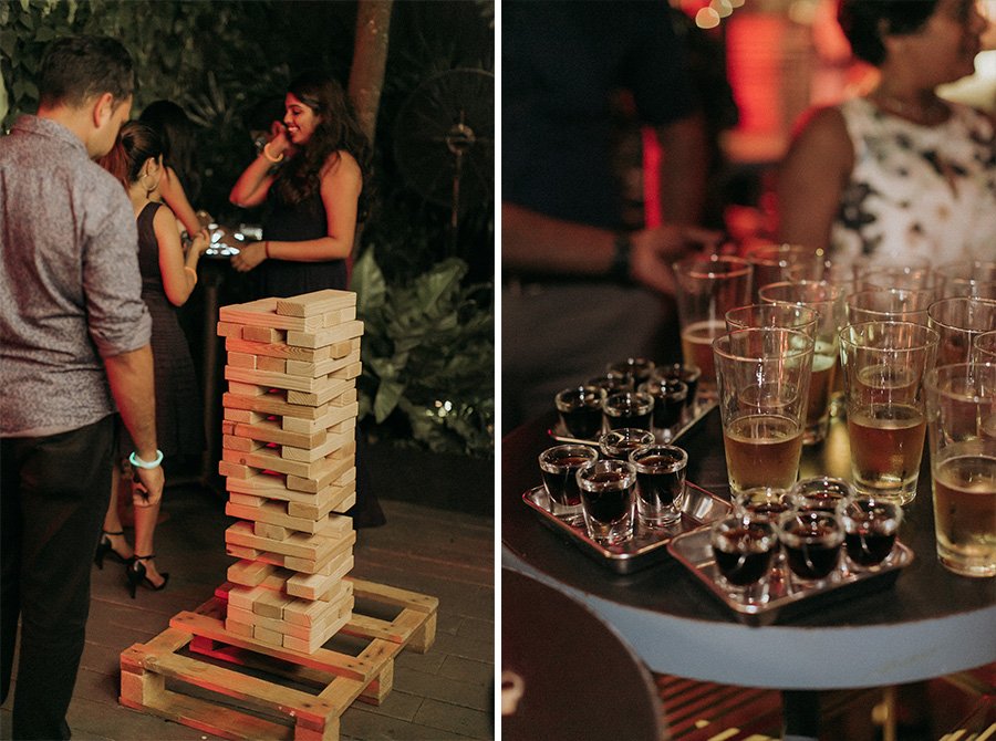 Set on the roof, Aanesh and Naanthini made their vows for one another. It was such a relaxed yet fun occasion even I myself envision to have a wedding like this. Think family, friends, alcohol, snacks, jumbo pick-up-sticks and jenga, music, party and neon lights. That’s your perfect concoction!