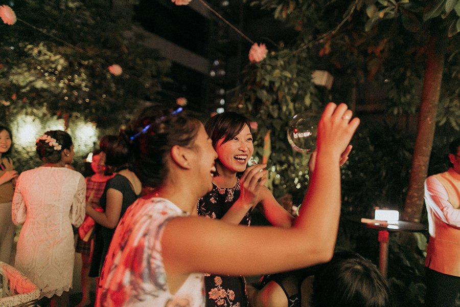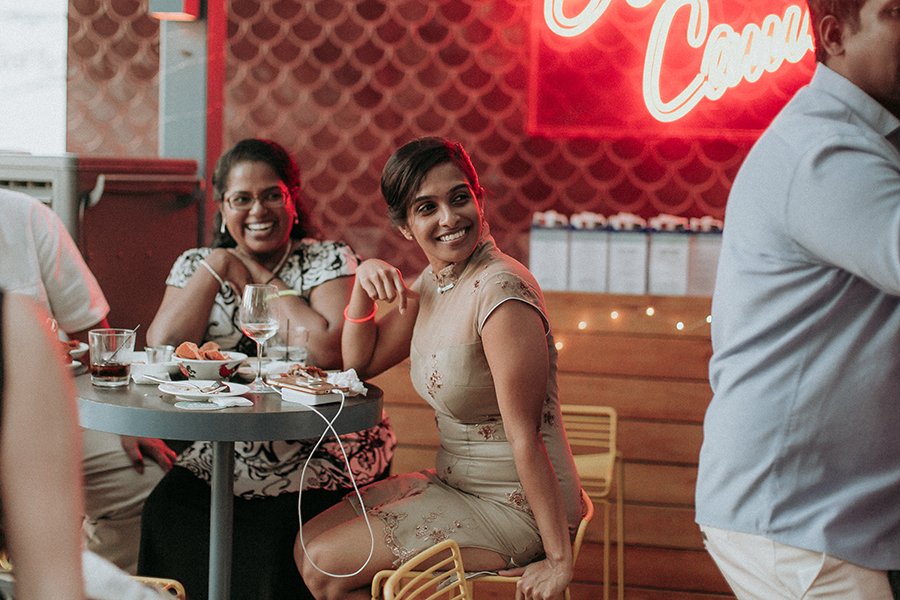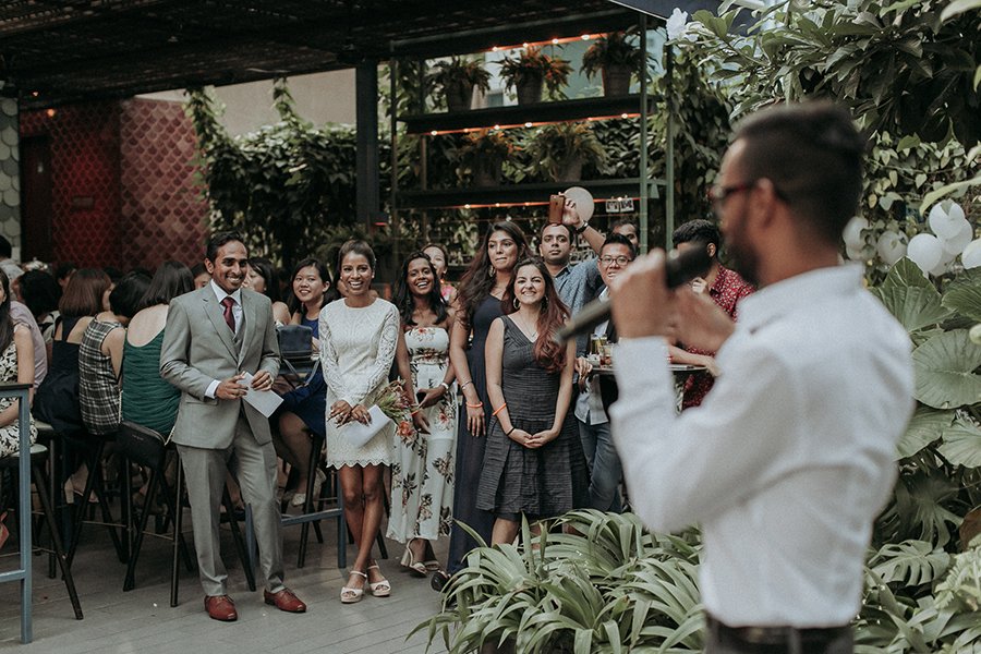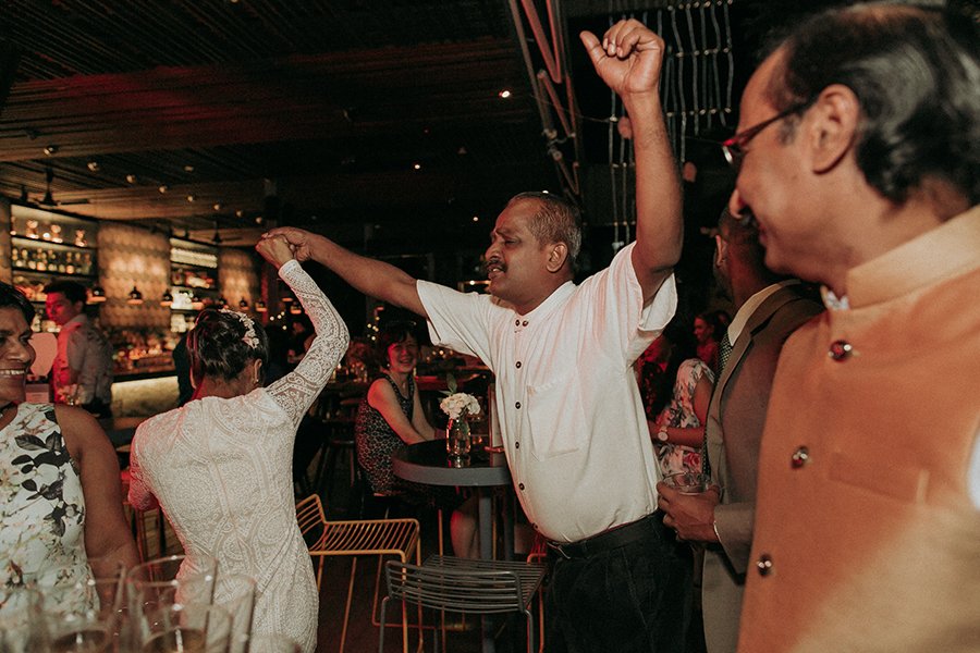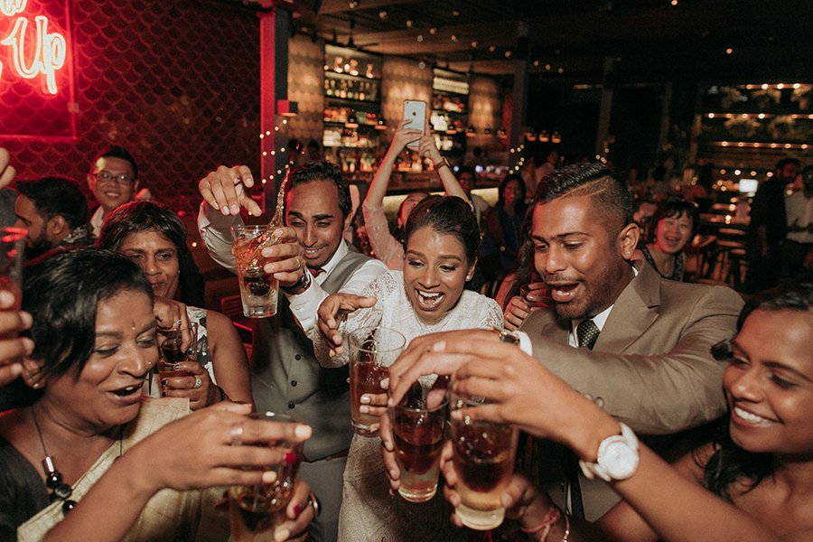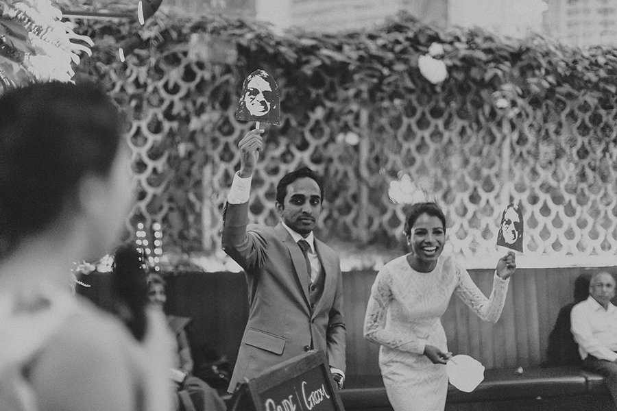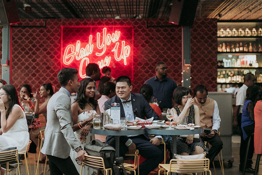 Set on the roof, Aanesh and Naanthini made their vows for one another. It was such a relaxed yet fun occasion even I myself envision to have a wedding like this. Think family, friends, alcohol, snacks, jumbo pick-up-sticks and jenga, music, party and neon lights. That’s your perfect concoction!